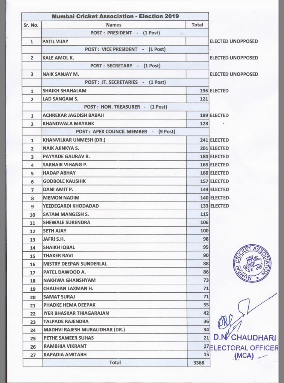 Sandeep Patil loses MCA prez elections to Amol Kale