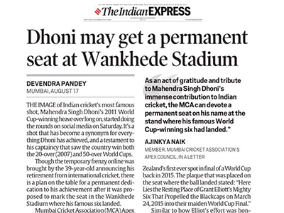 MS Dhoni may get a permanent seat at Wankhede Stadium