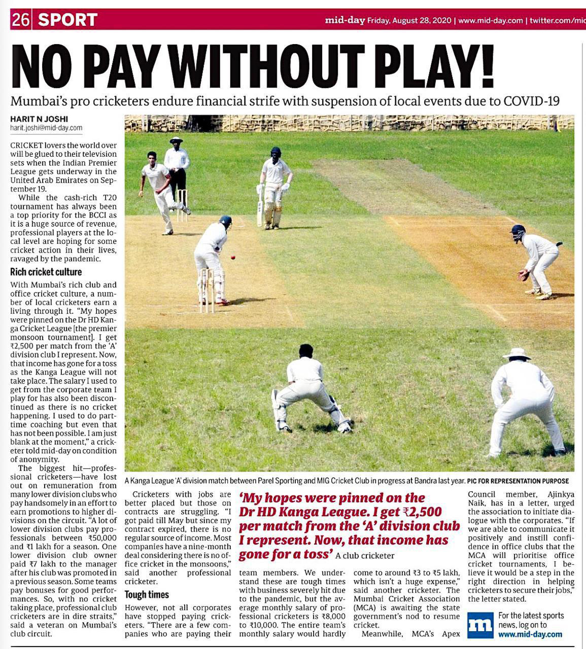 Mumbai's pro cricketers endure financial strife with suspension of local events due to COVID-19