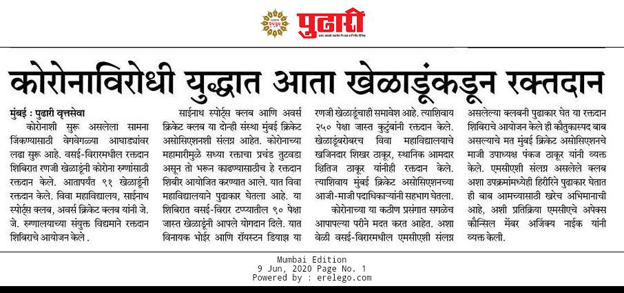 मुंबई के रणजी क्रिकेटरों ने रक्तदान किया