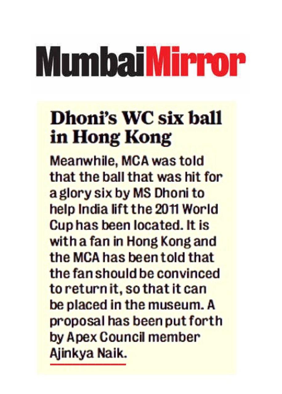 The ball that MS Dhoni hit for that iconic six to win 2011 World Cup located