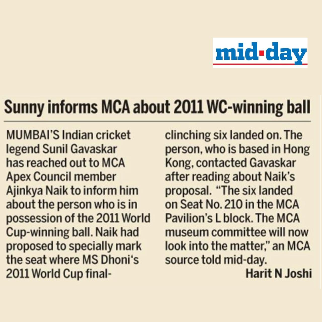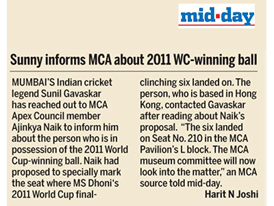 Sunil Gavaskar helps MCA find 2011 World Cup final ball