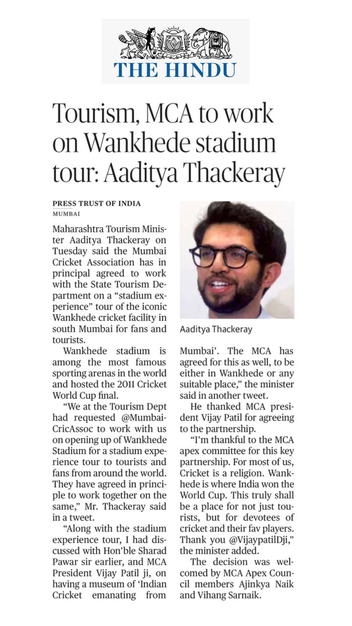 Maha tourism, MCA to work on Wankhede stadium tour: Aaditya